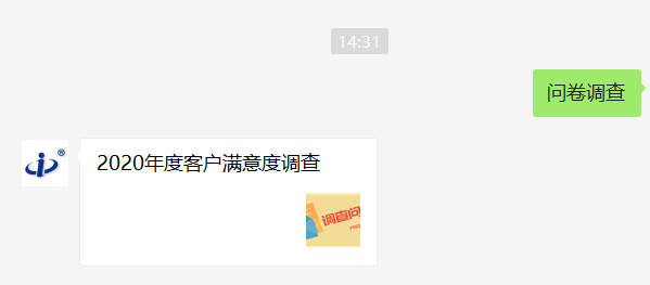 方式二:关注我司官方微信公众号,在对话框中输入“问卷调查“即可获取问卷链接。