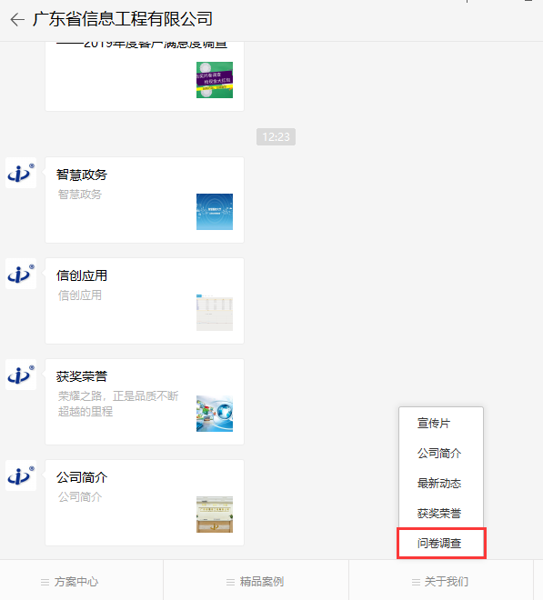 方式三:关注我司官方微信公众号,点击下方菜单栏,关于我们-问卷调查,即可获取问卷链接。